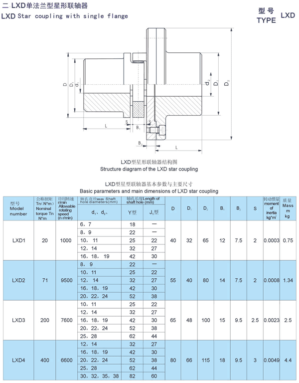 LXD(XLD)系列單法蘭星形彈性聯軸器