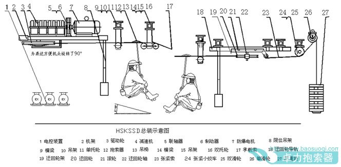 煤礦大坡度可摘掛抱索器架空乘人裝置結構組成